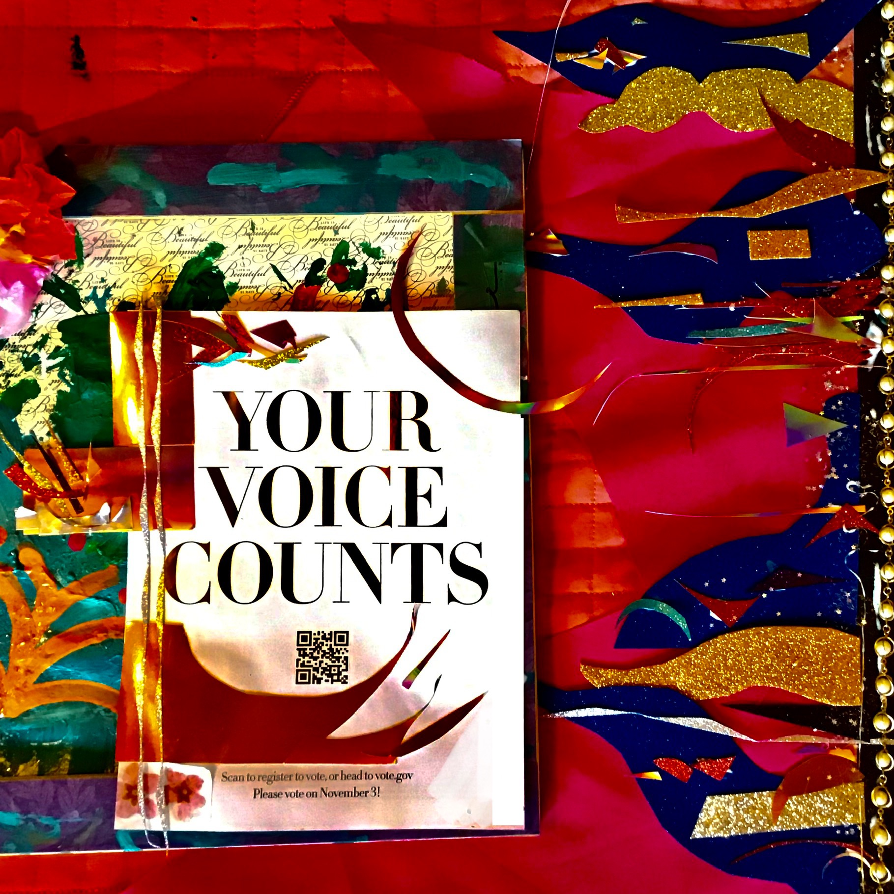 Future Botanic is a broad collection of pieces which utilize flowers, found objects, and thrifted materials to weave together imagination and resourcefulness. From voter registration guides to commissioned embroidery, Future Botanic emphasizes the idea that the future is created and predicated on the choices made today.